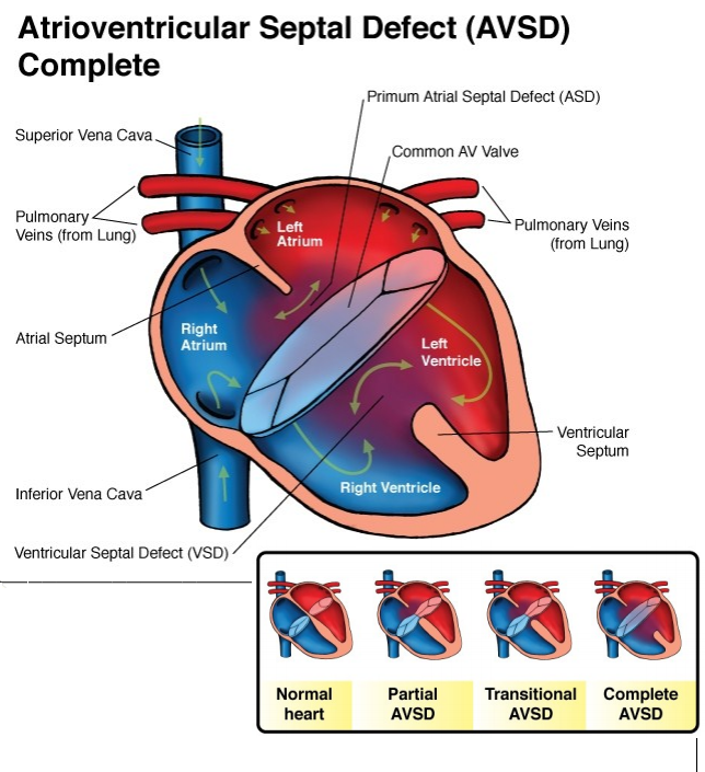 Atrial septal defect (ASD) is a congenital heart defect in which blood flows between the atria (upper chambers) of the heart. Normally, the atria are separated by a dividing wall, the interatrial septum. If this septum is defective or absent, then oxygen-rich blood can flow directly from the left side of the heart to mix with the oxygen-poor blood in the right side of the heart, or vice versa.[1] This can lead to lower-than-normal oxygen levels in the arterial blood that supplies the brain, organs, and tissues. However, an ASD may not produce noticeable signs or symptoms, especially if the defect is small.