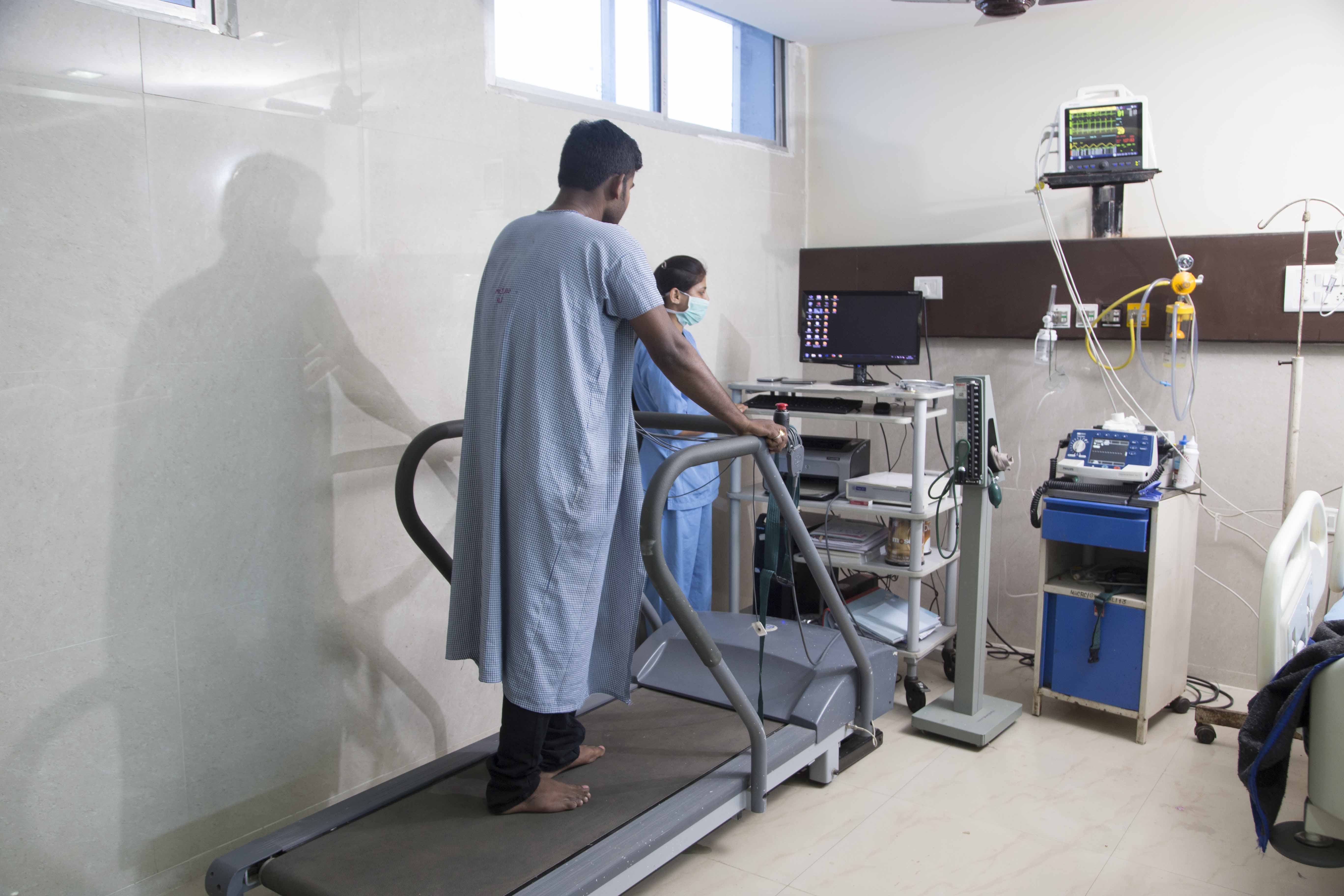 During an electrophysiology study (EPS) of the heart, catheters are threaded into a vein at the top of the leg; guided under fluoroscopy, the catheter makes its way to the heart. The catheters measure the electrical signals within the heart. EPS of the heart may be performed to determine whether the patient needs a pacemaker, why somebody is fainting if other tests have found no cause, and to help decide the best treatment for patients with arrhythmia (abnormal heart rhythm). EPS may also determine how prone a patient is to tachycardia (accelerated heart beat).